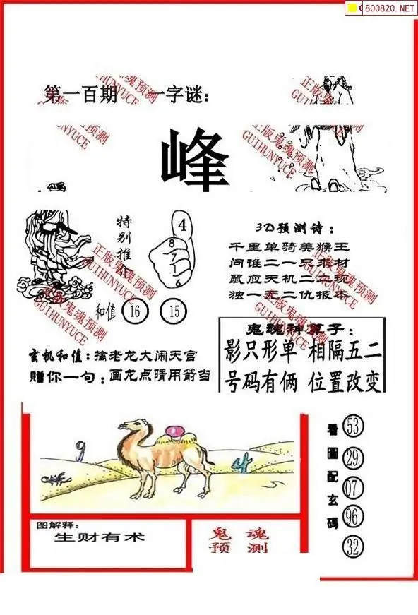 鬼魂图26100期一句中奖诗+鬼魂预测图迷
