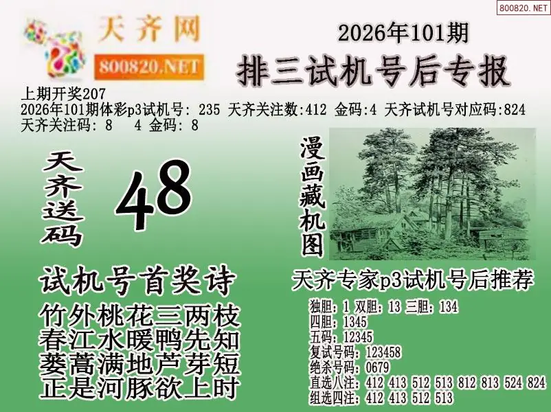 2026年101期体彩p3试机号后天齐网专报