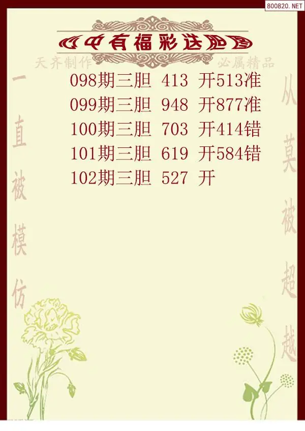 2026年102期心中有福福彩送胆图谜(天齐网原创)