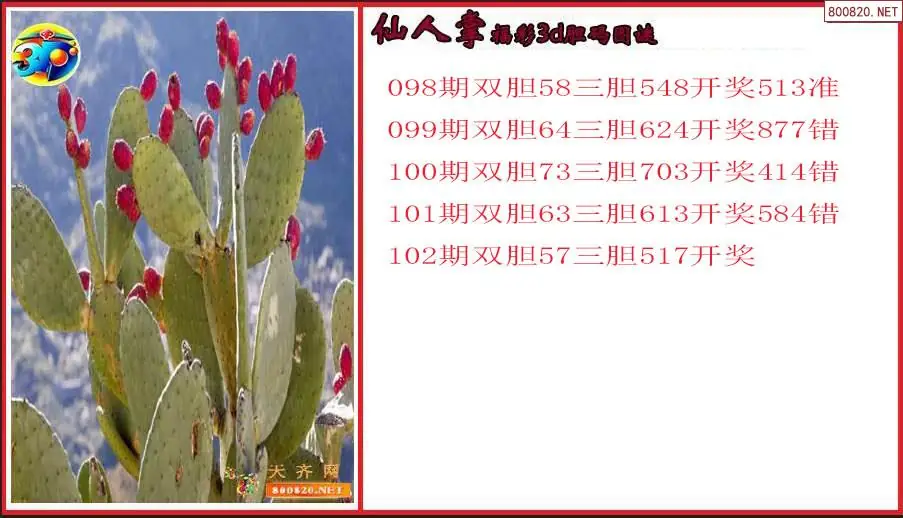 仙人掌2026102期福彩3d胆码图谜(原创)