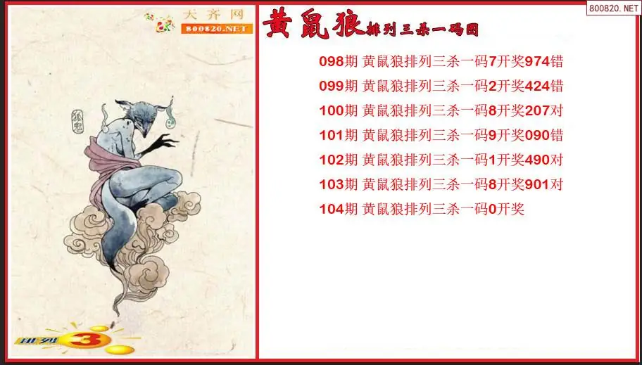 排列3第2026104期黄鼠狼杀一码图(原创)
