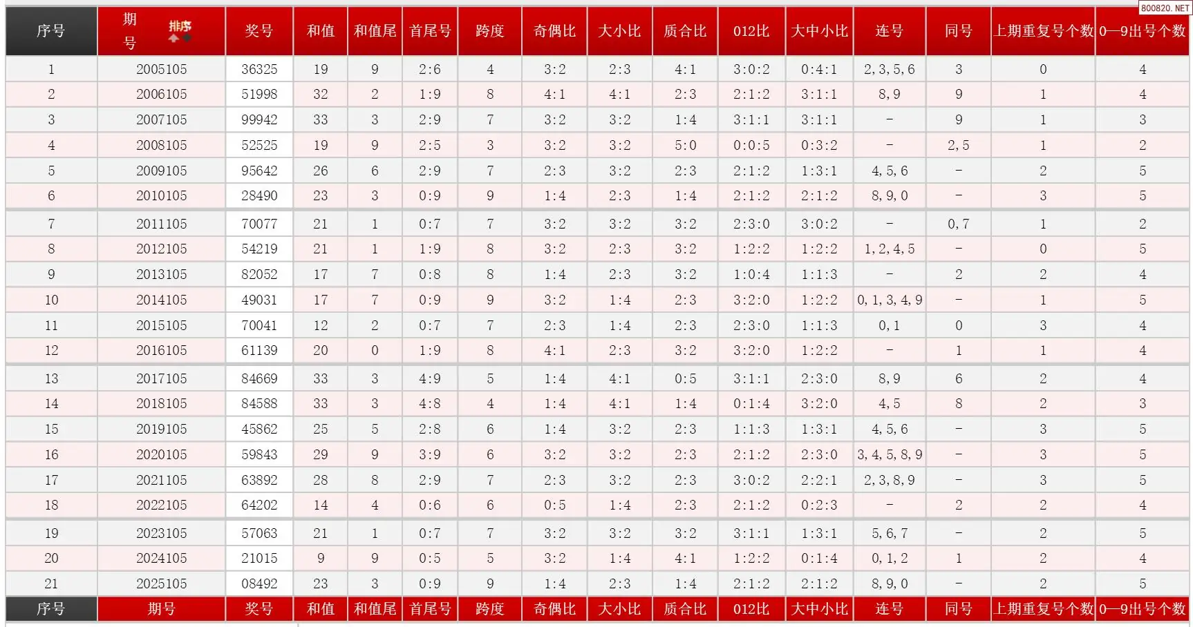 105期体彩P5历史同期对比图表+近期走势图分析