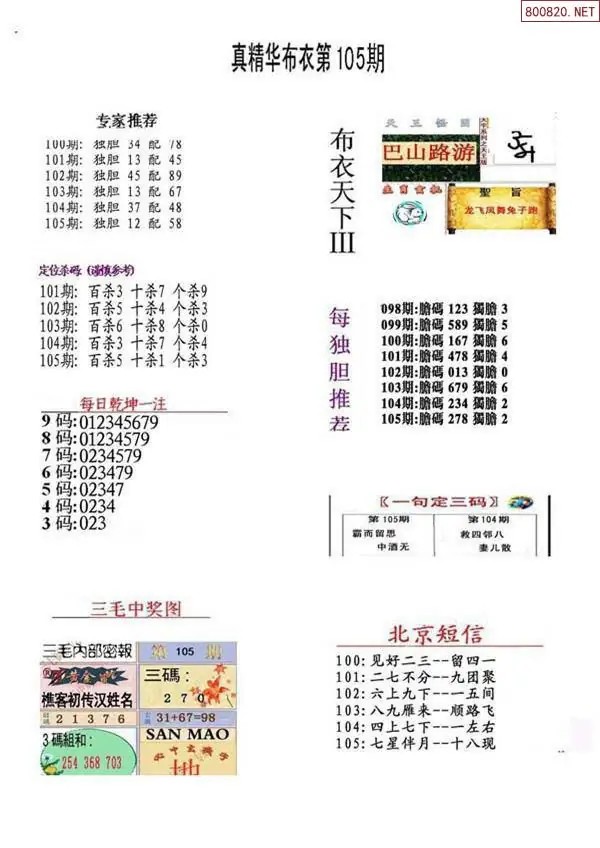 26105期真精华布衣123456