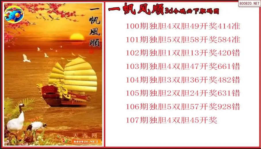 一帆风顺2026107期3d今晚必下胆码图(原创)