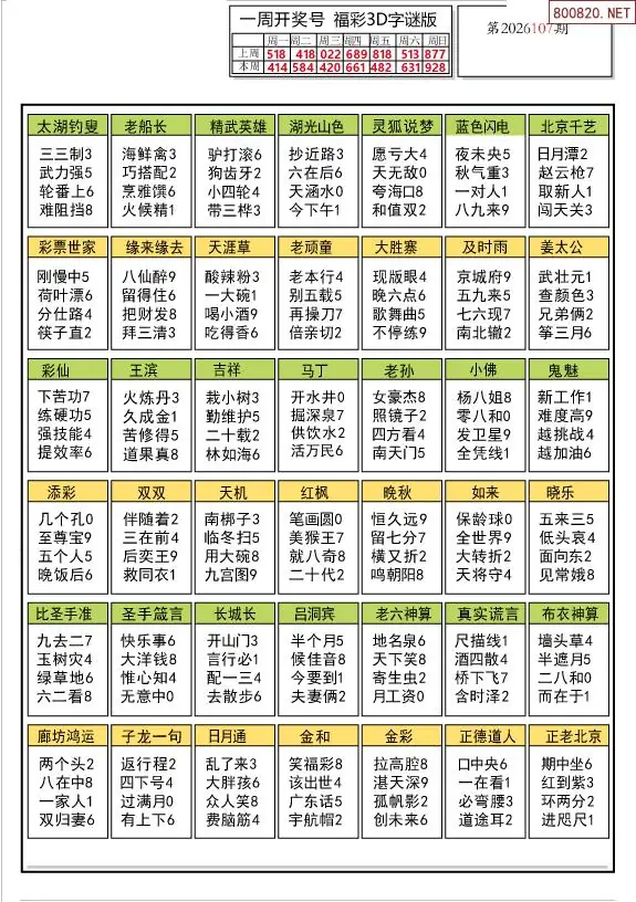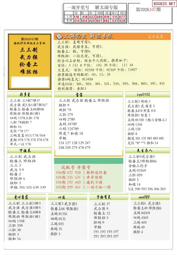 26年107期解太湖3d字图迷汇总彩报