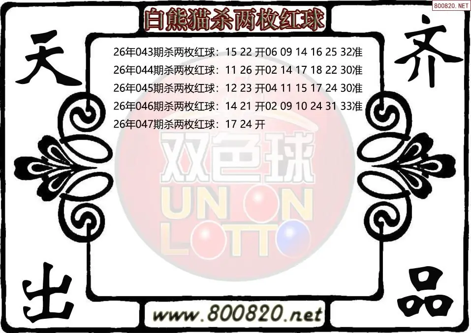 白熊猫26年047期双色球杀两枚红球图谜