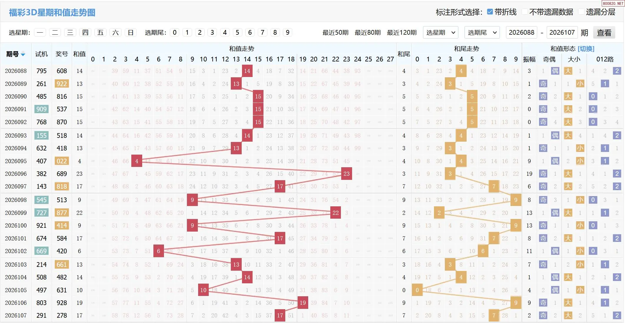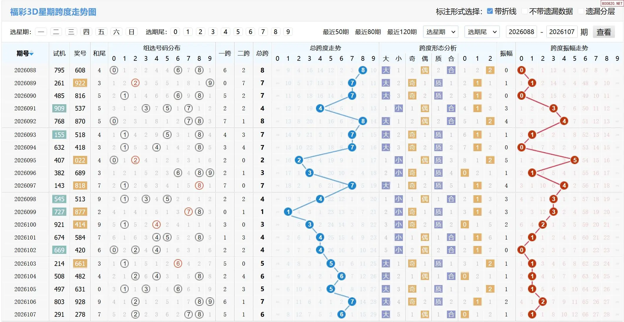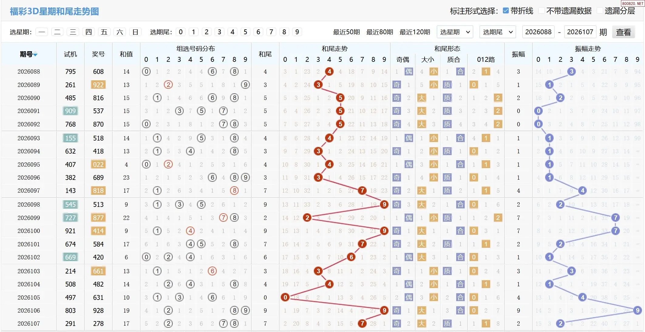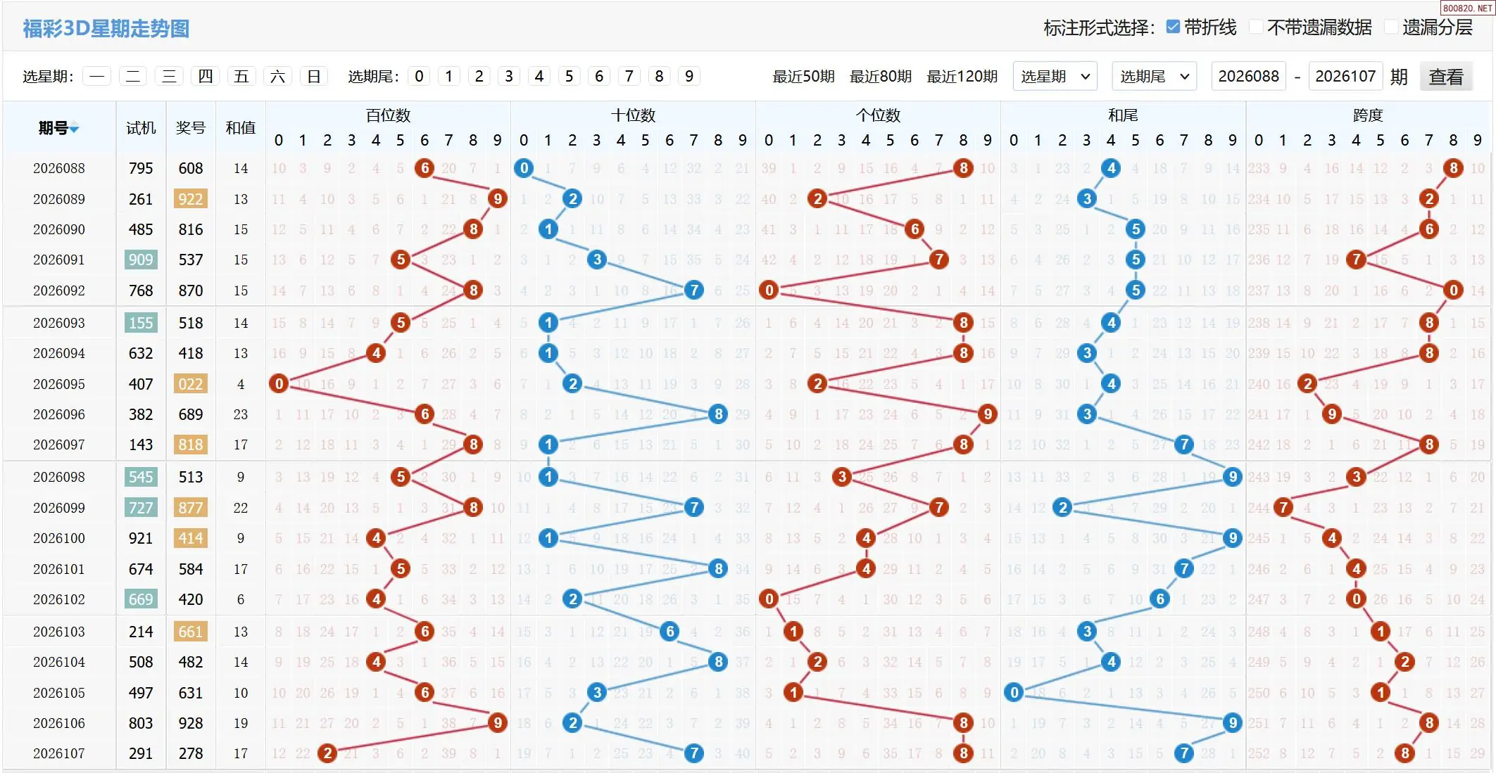 2026108期福彩3D基本走势图如下:
