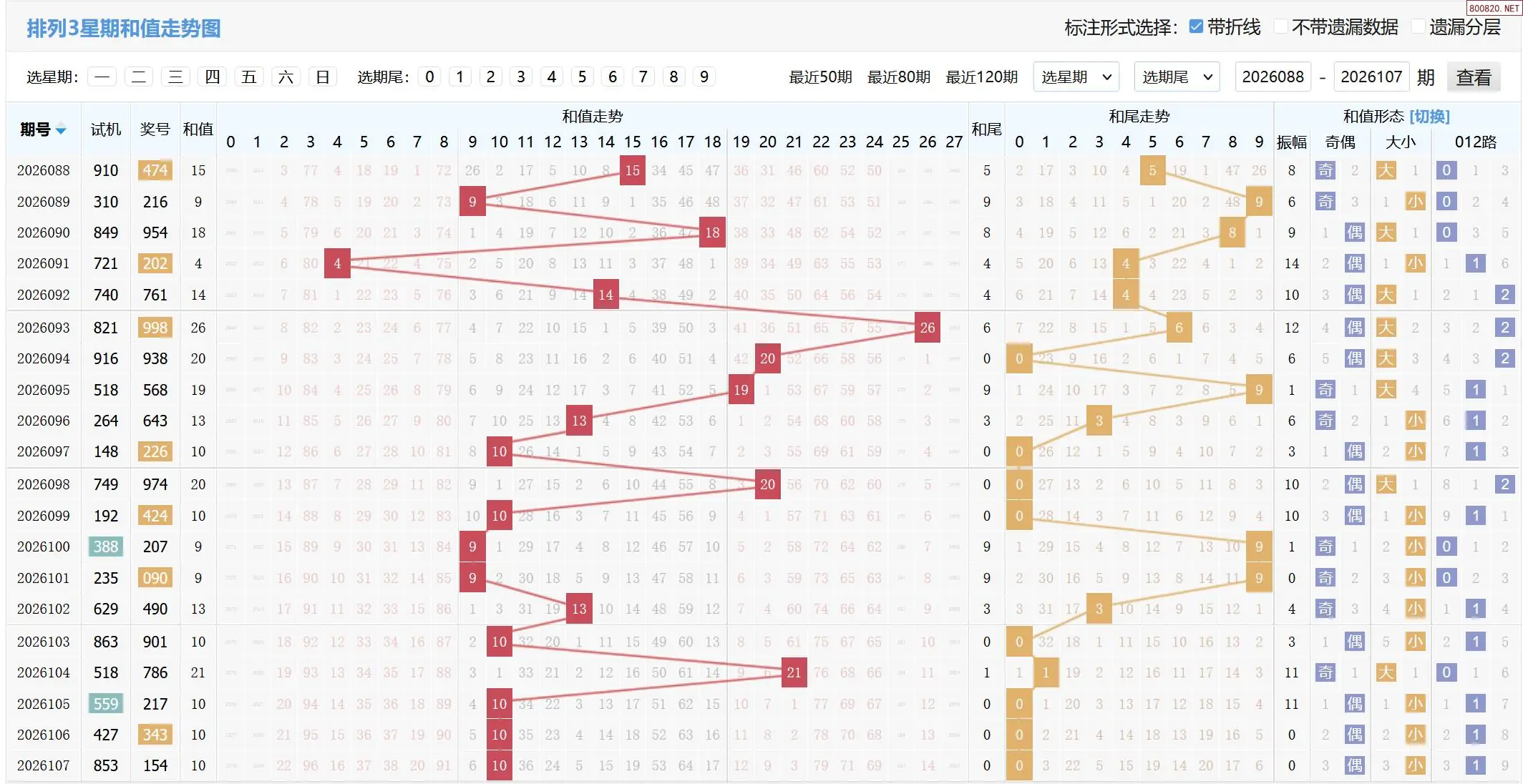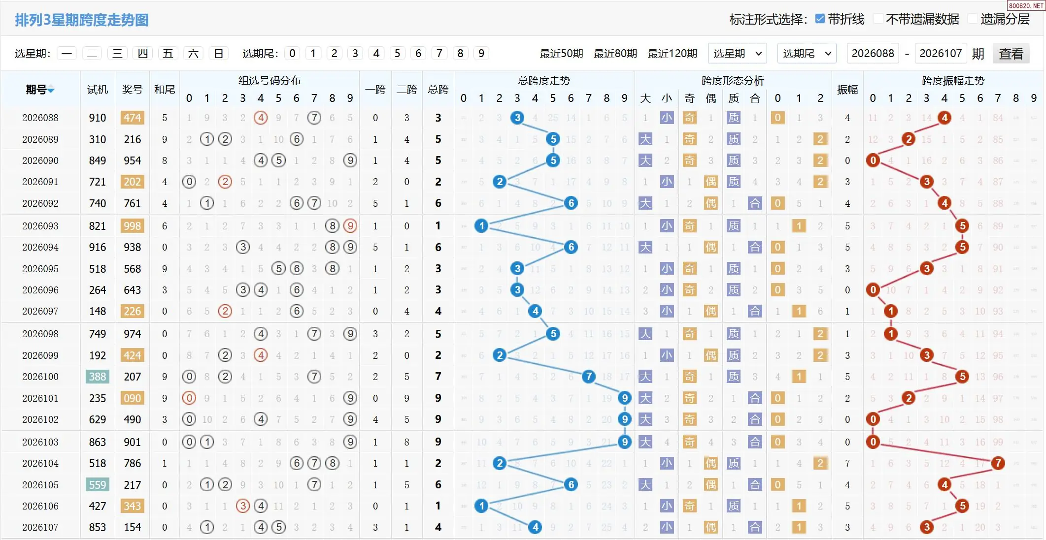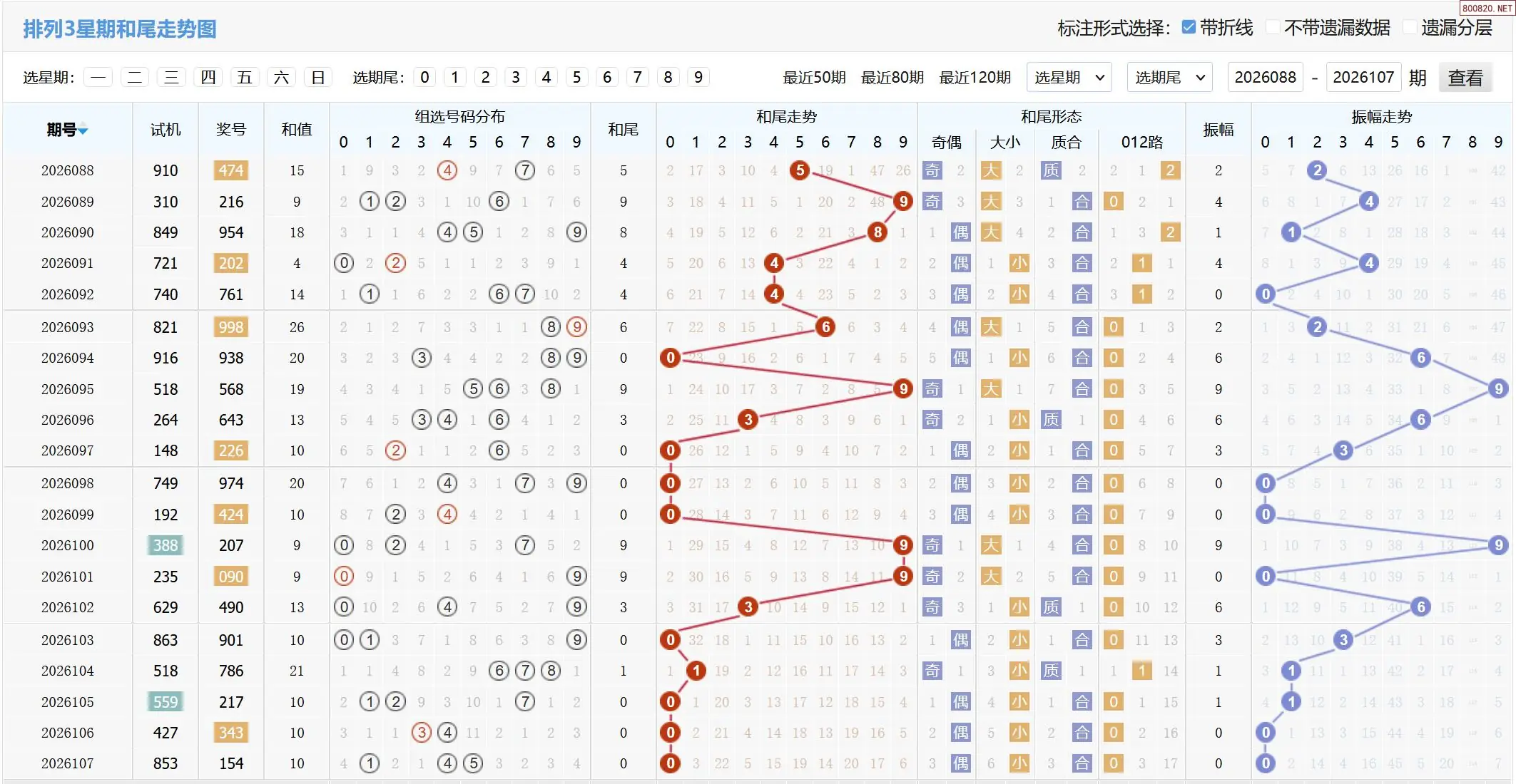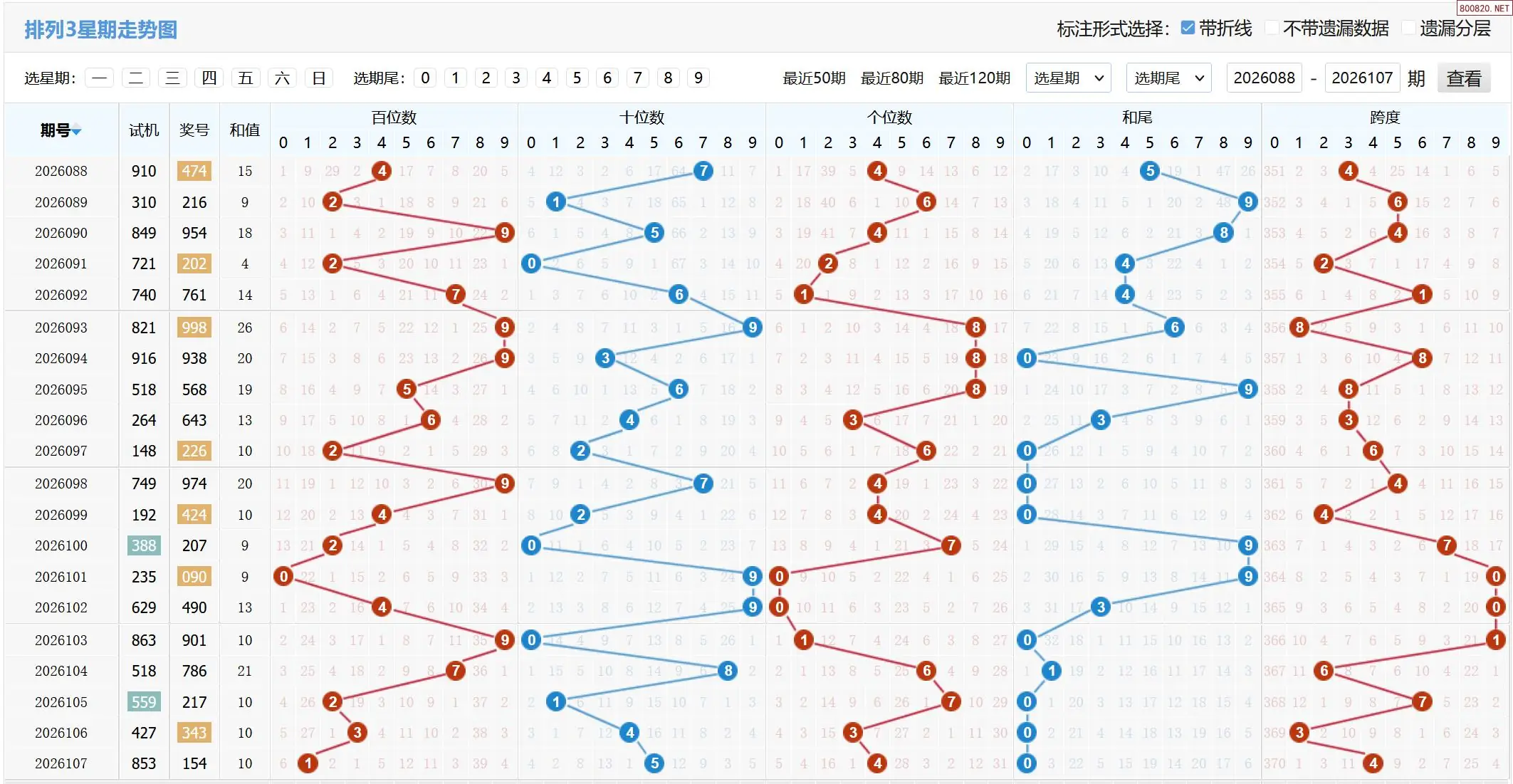 2026108期体彩P3基本走势图如下: