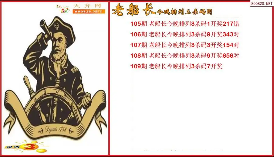 老船长2026109期今晚排列3杀码图(原创)