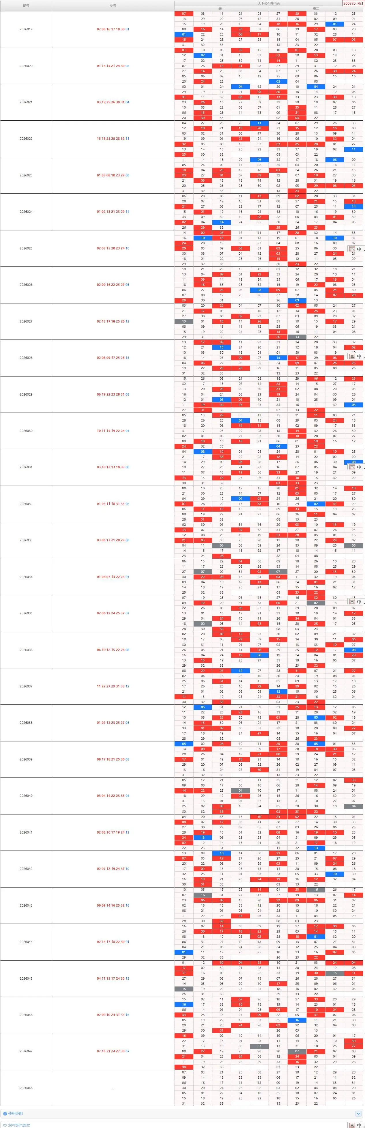 1 双色球26048期天下帮不同出号图表