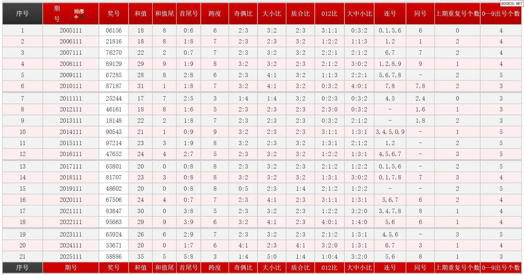 2 111期体彩P5历史同期对比图表+近期