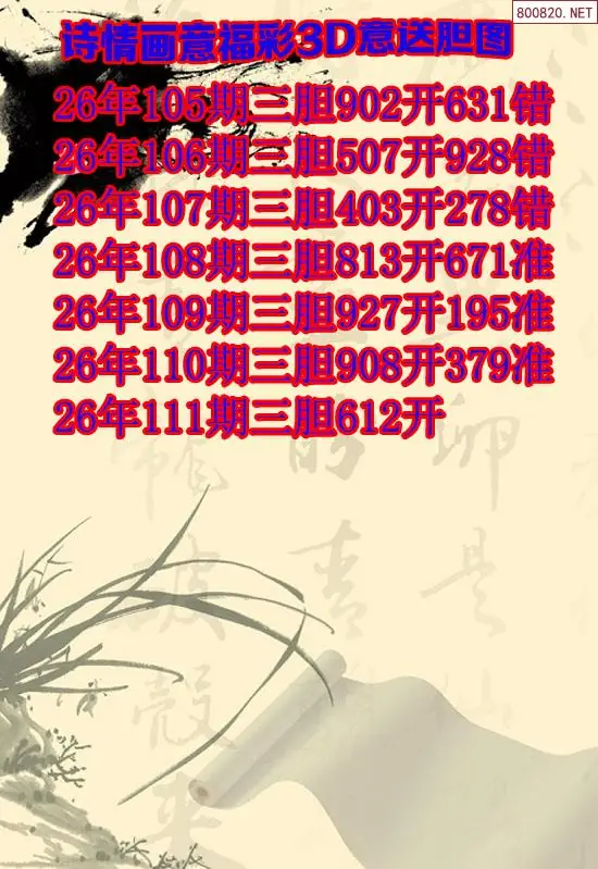天齐原创3d图谜111期诗情画意三胆图