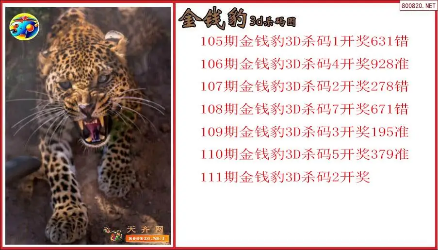 金钱豹2026111期3d杀号图(原创)