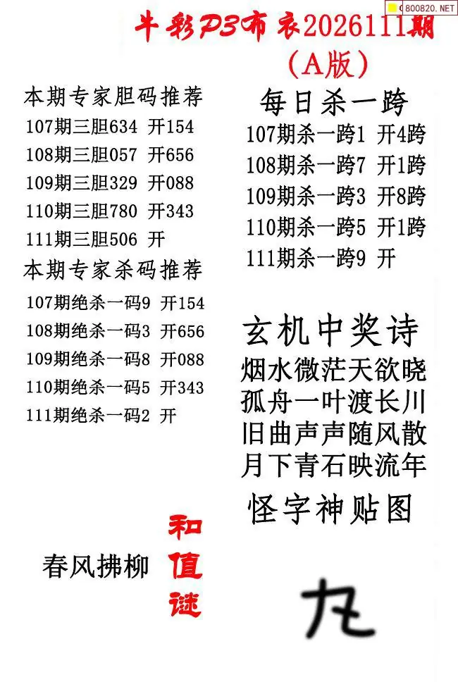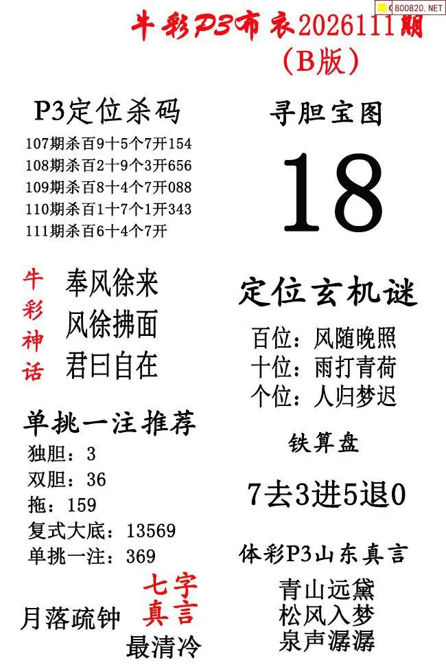 牛彩体彩P3布衣2026年111期AB版图谜(精华版)